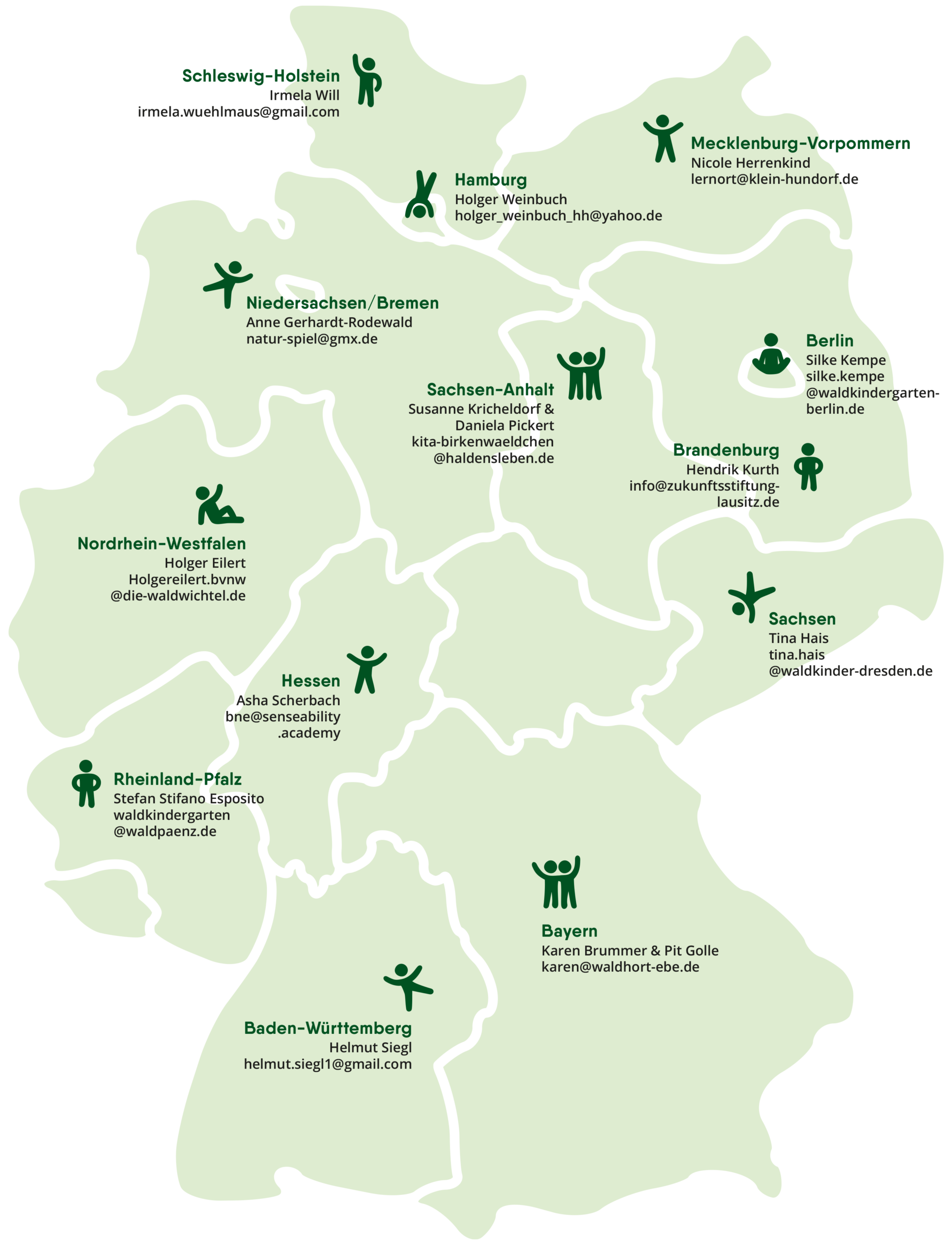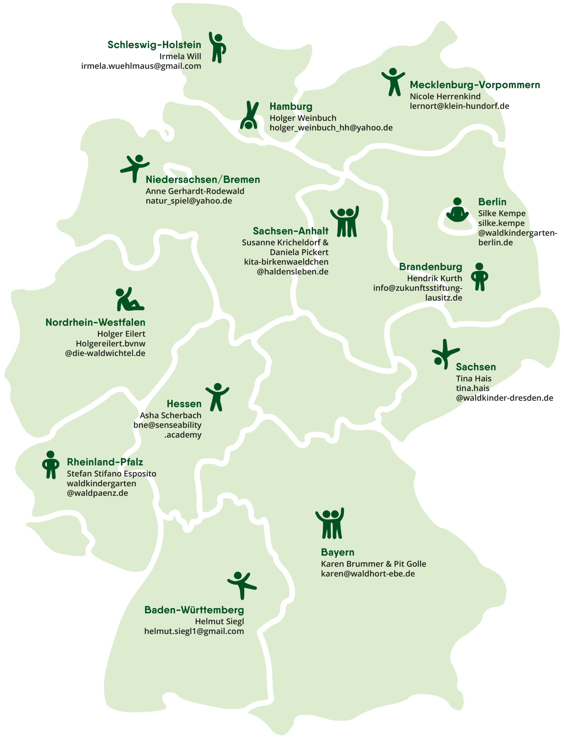 | Sachsen | Tina Hais | tina.hais@waldkinder-dresden.de |